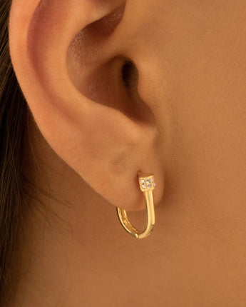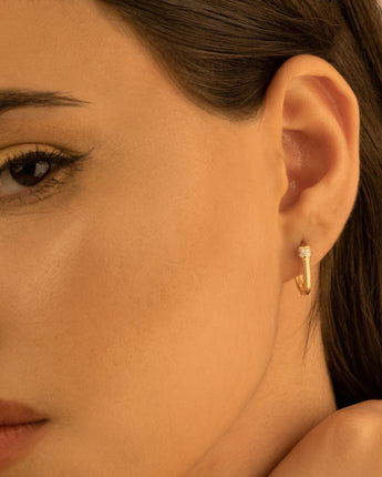 Diamond Hoop Earrings - Tiny Diamond Earring - Geometric Earring - Modern Jewelry - Dainty Earrings - Mini Size Hoop Earrings - Gift for Her - Anniversary Gift