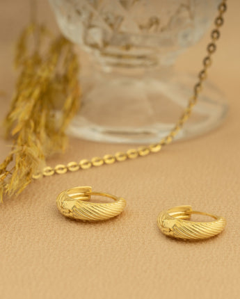 Ribbed Link Huggie Hoops Earrings - Mother's Day Gift - Striped Huggie Hoop Earring - Classic Earrings - Simple Earrings - Dainty Earrings - Gift for Her