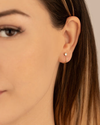 925 Sterling Silver Solitaire Diamond C Hoop Earrings