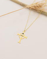 925 Sterling Silver Cross Name Necklace with Birth Stone