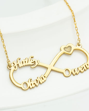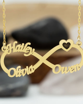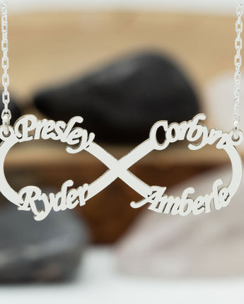 Experience infinite love with our 925 Sterling Silver Infinity Necklace With Names. Made with high-quality silver, this necklace features an infinity symbol personalized with the names of your choice. A perfect gift to show your everlasting love and devotion.