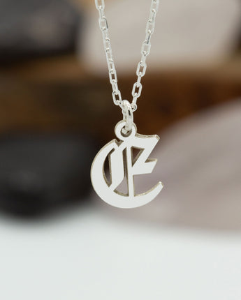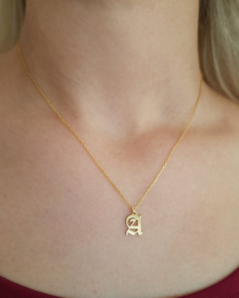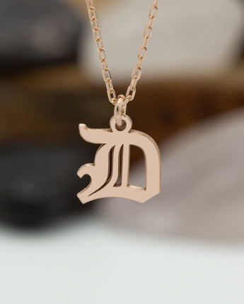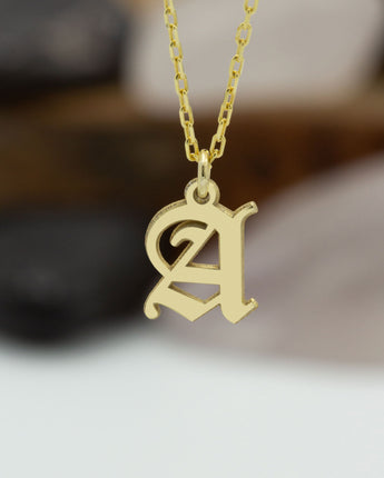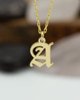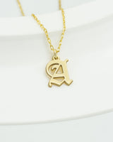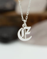 925 Sterling Silver Personalized Initial Necklace, Old English Font Letter Necklace