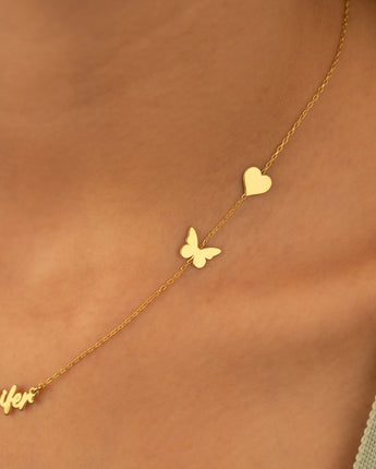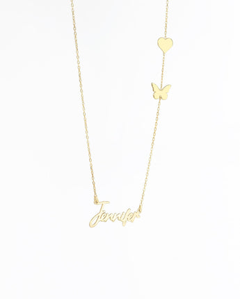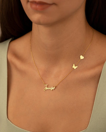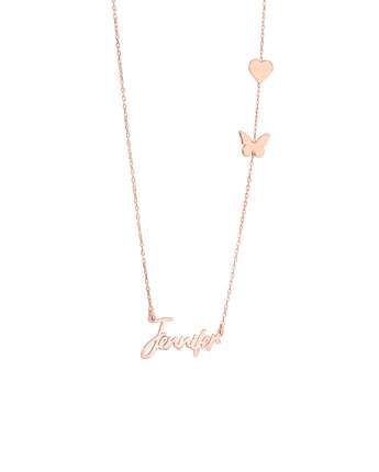 925 Sterling Silver Personalized Name Necklace with Heart and Butterfly