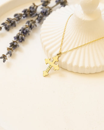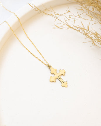 Experience the beauty and meaning of faith with our 925 Sterling Silver Eastern Orthodox Cross Name Necklace. This elegant piece is perfect for a special gift, featuring a unique religious charm and customizable name inscription. Embrace the timeless tradition with this stunning Christian jewelry gift for her.