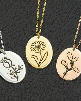 Handmade Birth Flower Necklace - 925 Sterling Silver Personalized Necklace with Flowers - Custom Birth Month Necklace - Gold Jewelry