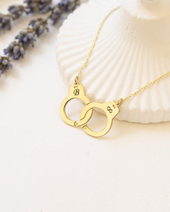 925 Sterling Silver Personalized Couple Initials on Handcuff Necklace