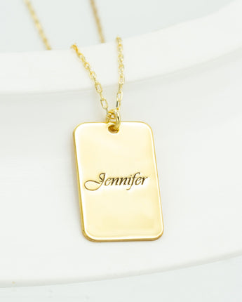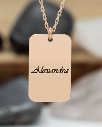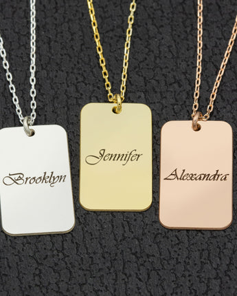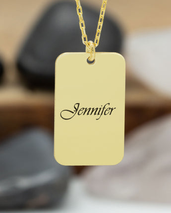 925 Sterling Silver Personalized Name Dog Tag Necklace Gold