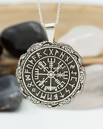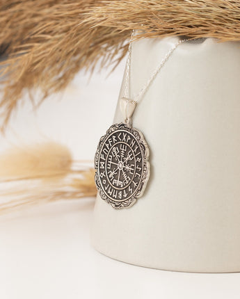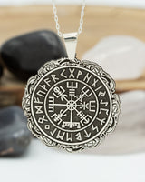 Personalized Norse Vikings Amulet - Silver Custom Name Nordic Rune Charm - Custom Vegvisir Rune Necklace - Custom Viking Alphabet Necklace - Vegvisir Necklace