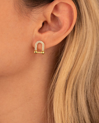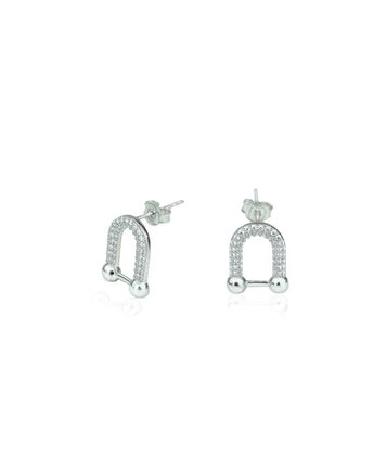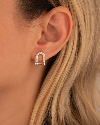 925 Sterling Silver Diamond Horseshoe Stud Earrings