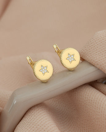 Diamond Star Round Earrings - Diamond Earrings - Celestial Earring - Dainty Earrings - Star Earrings - Earring for Women - Gift for Her