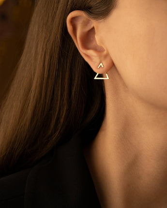 Ear Jacket Earrings - Christmas Gift - Triangle Earring - Dainty Ear Jacket - Double Earrings - Geometric Earrings - Modern Jewelry - Best Friend Gift - Gift for Her - Birthday Gift
