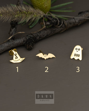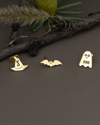 Ghost Tiny Earring, Valentine's Day Gift, Boo Studs Earring, Minimal Ghost Earring, Wizard hat earring, Bat Studs Earring