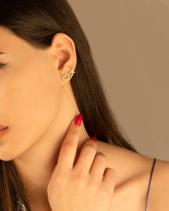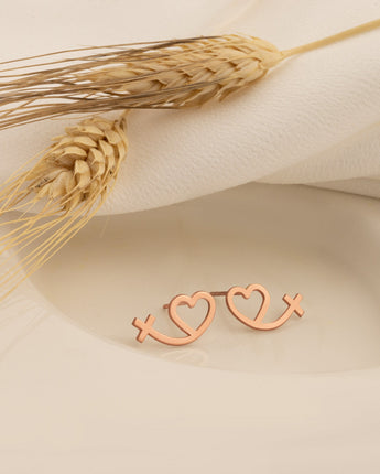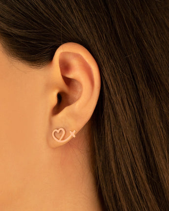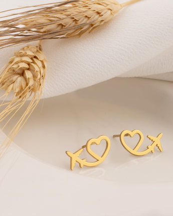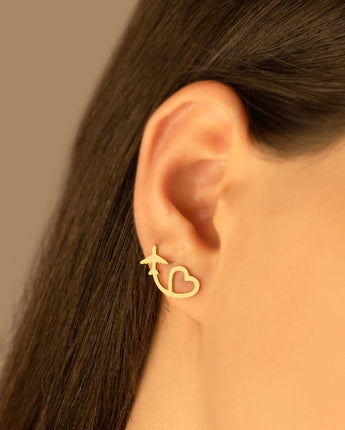 Heart with Plane Earrings - Gift for Her - Minimalist Heart and Letter Earring - Dainty Heart and Cross Stud Earring - Personalized Earring - Bridesmaid Gift - Gift for Her - Birthday Gift - Personalized Gifts - Christmas Gift
