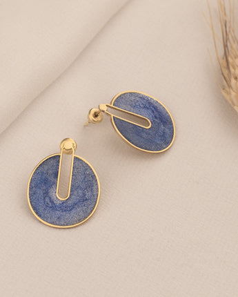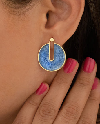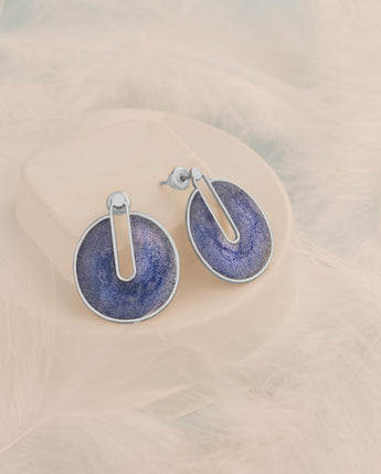 Silvery Blue Errings - Enamel Modern Stud Earring - Trending Earrings - Modern Jewelry - Birthday Gift - Gift for Her