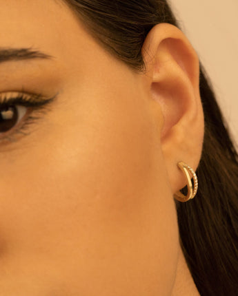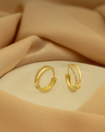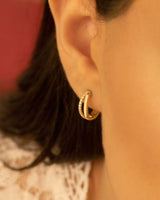 Two Line Hoop Earrings - Mother's Day Gift - Diamond Earrings - Huggie Earring - Dainty Earrings - Mini Size Hoop Earrings - Gift for Her - Modern Jewelry