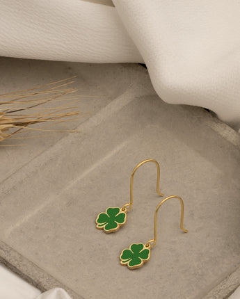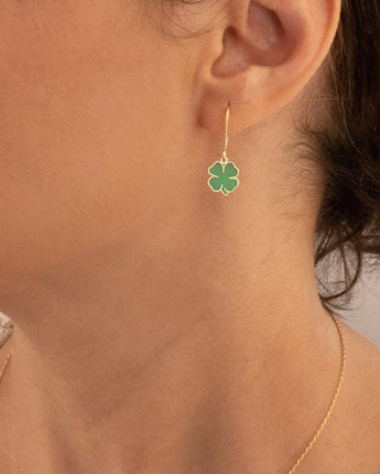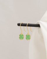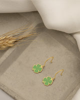 Green Clover Earring - Enamel Clover Earrings - Lucky Earrings - Minimalist Earring - Flower Jewelry - Silver Earrings - Gift for Her