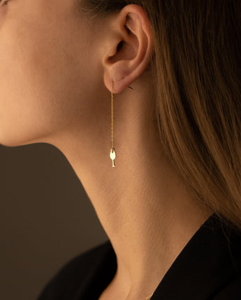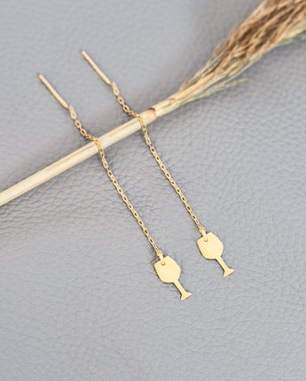 Threader Glass and Wine Earrings - Christmas Gifts - Party Threader Earrings - Noel Earrings - Minimalist Jewelry for Women - Gift for Her - Christmas Jewelry - Gift for Employees
