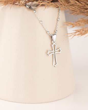 925 Sterling Silver Budded Cross Necklace