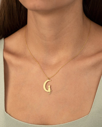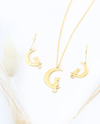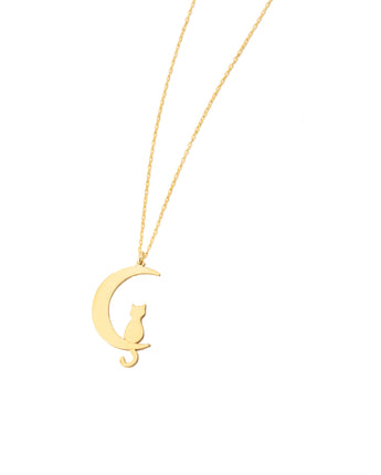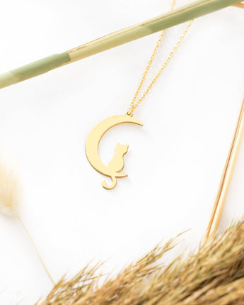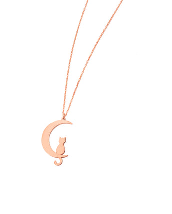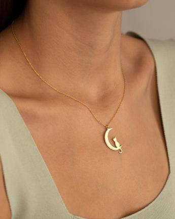 Cat Moon Necklace - Cat Charm Necklace - Cat Jewelry - Cat Lover's Gift - Cat Charm Minimalist Necklace - Best Friend Gift - Gift for Her - Cat and Moon Gift