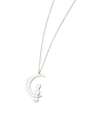 925 Sterling Silver Cat Moon Necklace