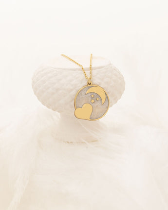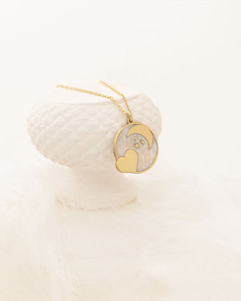 925 Sterling Silver Enamel Heart and Moon Necklace
