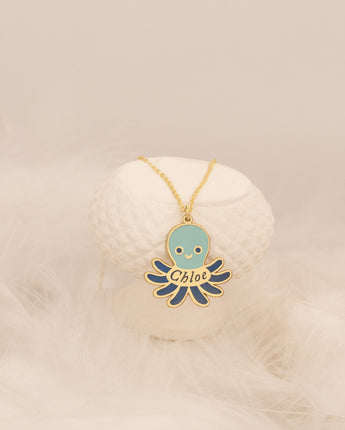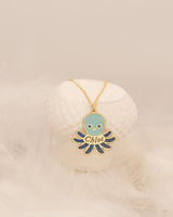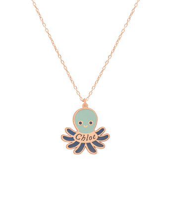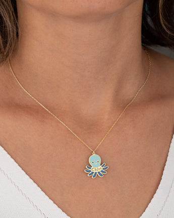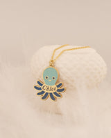 Crafted from high-quality 925 sterling silver, this necklace features a charming octopus pendant with vibrant enamel details. Add a personalized touch by adding your name to the pendant. Enhance any outfit with this unique and elegant piece, perfect for both casual and formal occasions.