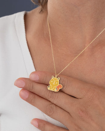 925 Sterling Silver Enamel Squirrel Necklace