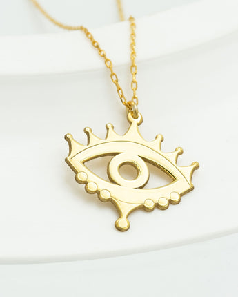 Gold Evil Eye Necklace - Crown Eye Necklace - Silver Eye Of Horus Dainty Necklace - Eye Of Crowned RA Necklace
