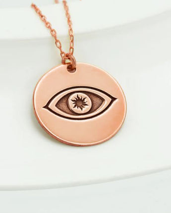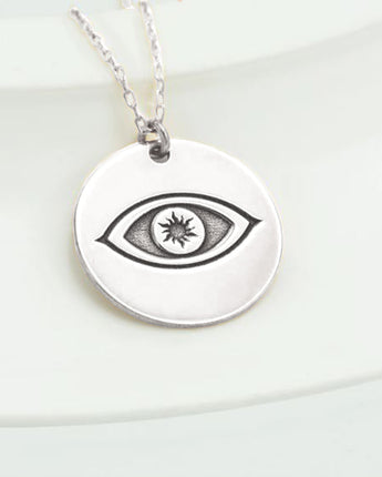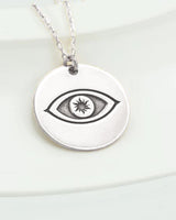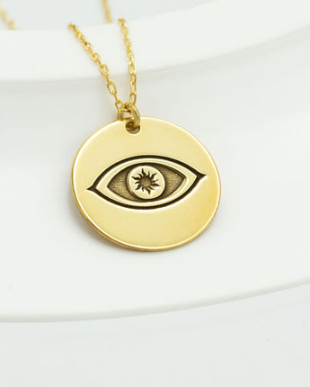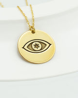Gold Eye Of Horus Disc Necklace - Silver Embossed Eye Of Ra Necklace - Evil Eye Necklace