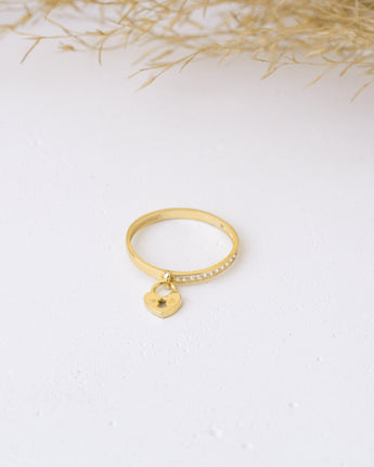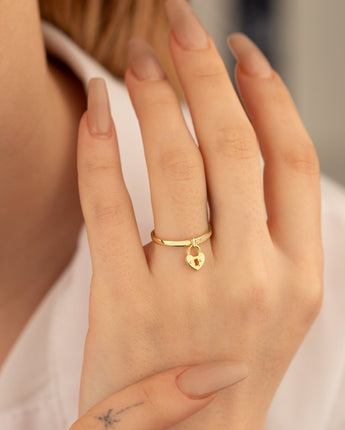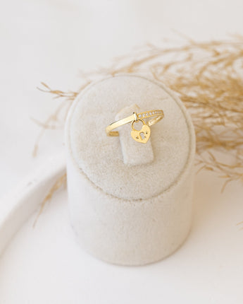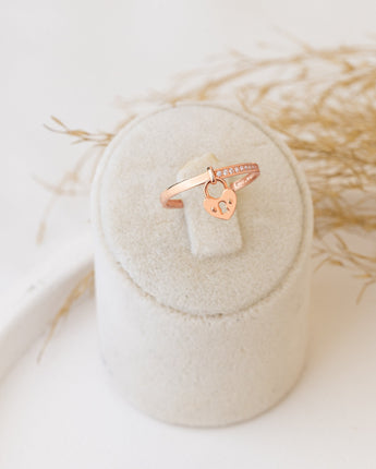 925 Sterling Silver Half Pave Dangling Heart Lock Ring