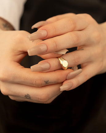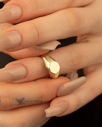 This Hexagon Signet Ring is a beautiful and meaningful gift for the special mom in your life. Made of 925 sterling silver, this minimalist ring features a unique hexagon design. Its sleek and modern style makes it perfect for any occasion and a perfect way to show your love and appreciation.