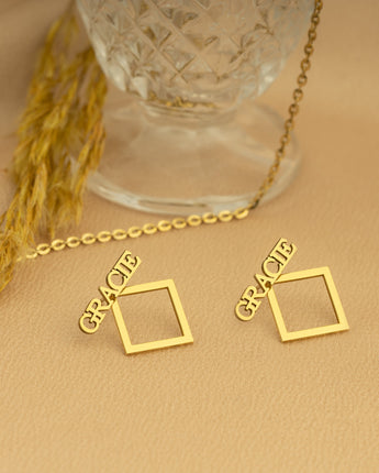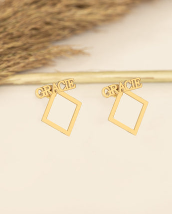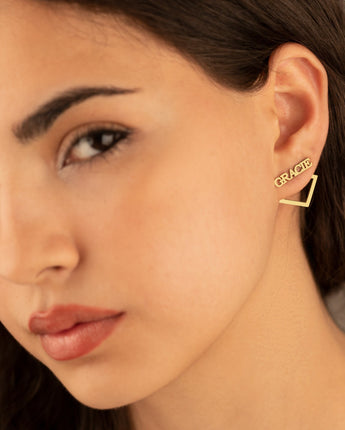 Ear Jacket Name Earrings - Square Name Earring - Personalized Earring - Double Earrings - Geometric Earrings- Modern Jewelry - Gift for Her - Best Friend Gift - Birthday Gift - Mother's Day Gift