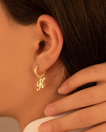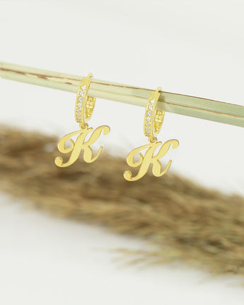 Pave Initial Earring - Dangling Letter Charm Earring - Pave Diamond Dangle Earrings - Initial Gift Earring - Best Friend Gift - Gift for Her - Birthday Gift - Mother's Day Gift