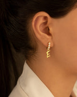 925 Sterling Silver Pave Initial Hoop Earrings