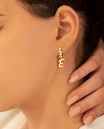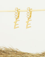 Pave Initial Hoop Earrings - Dangling Letter Charm Earrings - Personalized Gift - Custom Diamond Letter Earrings - Alphabet Hoop Earring - Best Friend Gift - Gift for Her - Birthday Gift - Mother's Day Gift