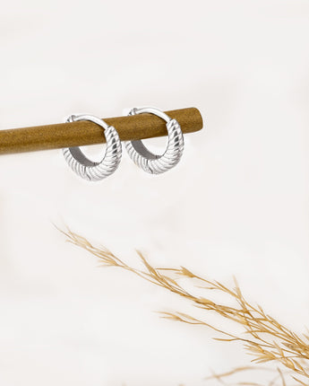 925 Sterling Silver Serrated Retro Huggie Hoop Earrings