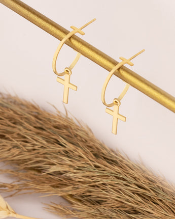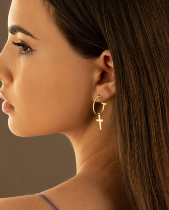 Cross Earrings - Mother's Day Gift - Cross Hoop Earrings - Dangle Cross Huggies - Hoop with Cross - Christian Jewelry - Gift for Her - Baptism Gift - Christian Jewelry - Baptism Cross Gift - Christian Gifts