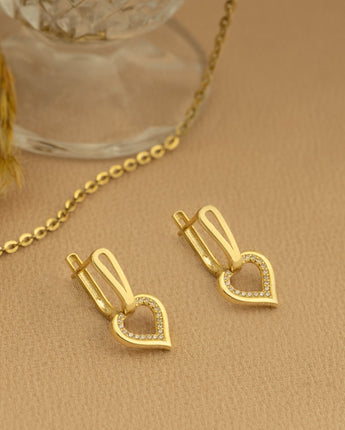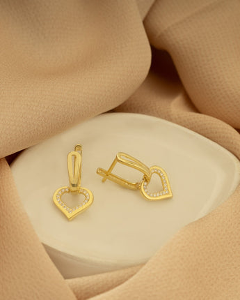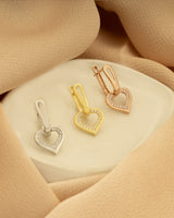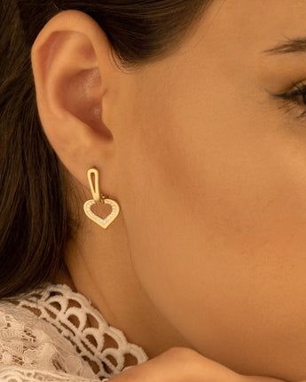 Diamond Heart Dangle Hoop Earrings - Diamond Heart Earring - Love Jewelry - Dainty Earrings - Dangle Hoop Earrings - Gift for Her - Anniversary Gift
