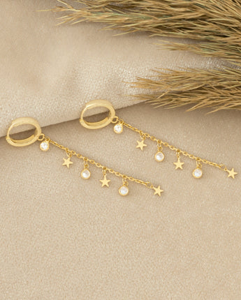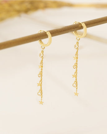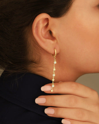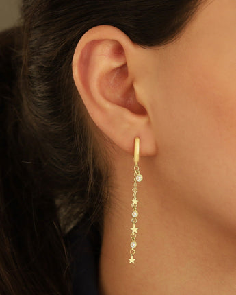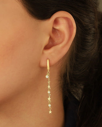 Threader Stars Hoop Earring - Tiny Star Hoop Earrings - Diamond Hoop Threader Earring - Modern Jewelry - Celestial Earring - Gift for Mother - Gift for Her