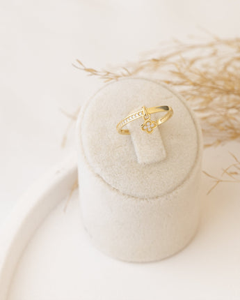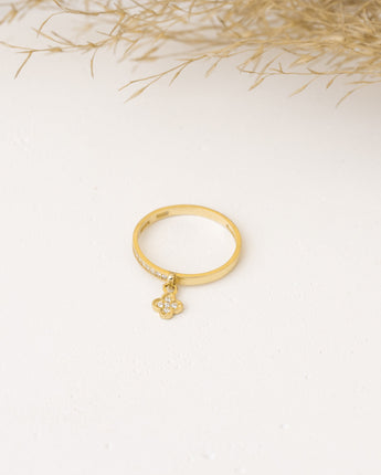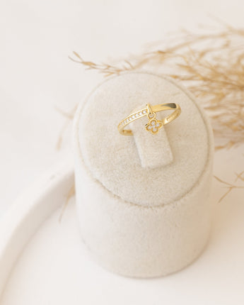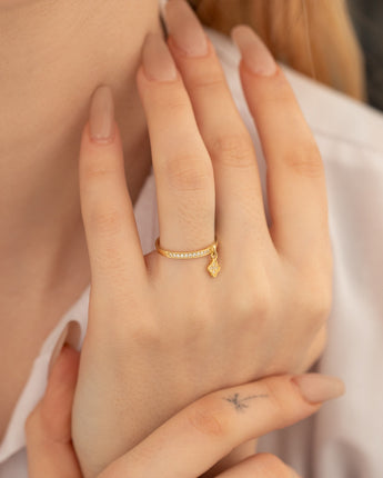 Elevate your style with our 925 Sterling Silver Half Pave Dangling Clover Ring. The exquisite half pave clover design not only adds a touch of elegance, but also brings good luck. This makes for a perfect Mother's Day gift, featuring a diamond dangle clover that will make any mother feel special.