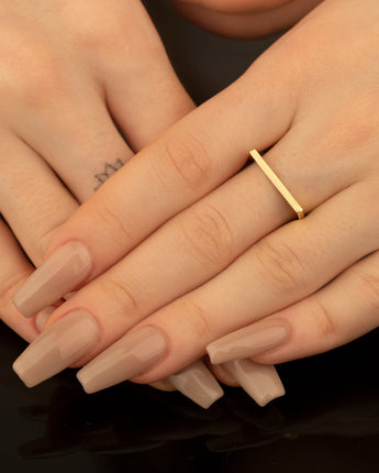 The Minimalist Flat Top Bar Ring is a stunning statement piece made of high-quality 925 sterling silver and 14K gold. The sleek bar design adds a touch of elegance to any outfit, making it the perfect gift for Mother's Day or any special occasion. Elevate your style with this minimalist and versatile ring.