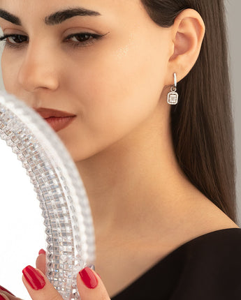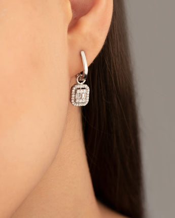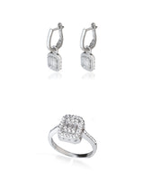 925 Sterling Silver Baguette With Zircon Stone Shape Set 2 Pieces: Ring & Earrings
