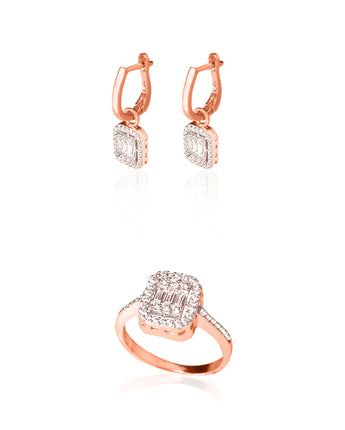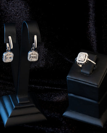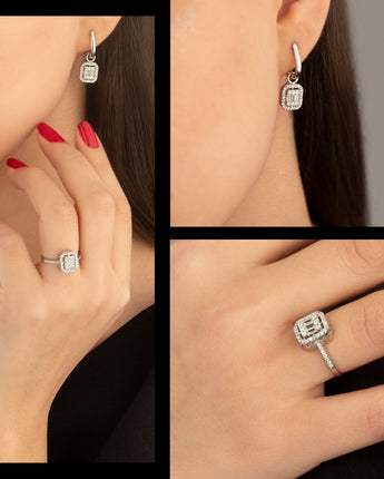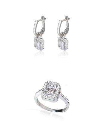 Baguette With Zircon Stone Shape Set 2 pieces: Ring & Earrings - Valentine's Day Gift - 925 Sterling Silver Jewelry Set - Gift for Her - Handmade Pendant - Gift for Wife
