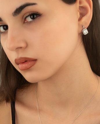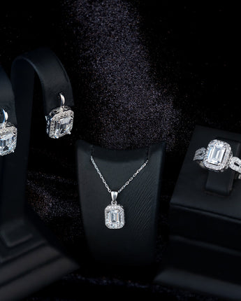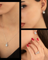 925 Sterling Silver Big Diamond Jewelry Set 3 Pieces: Necklace, Ring & Earrings