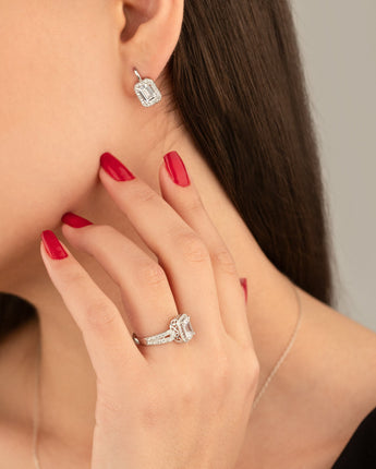 Big Diamond Jewelry Set 3 pieces: Necklace, Ring & Earrings - Valentine's Day Gift - 925 Sterling Silver Jewelry Set - Gift for Her - Handmade Pendant - Gift for Wife