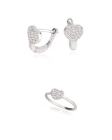 925 Sterling Silver Diamond Heart Shape Set 2 Pieces: Ring & Earrings