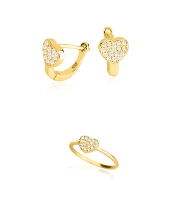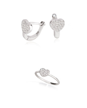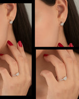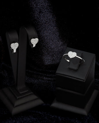 Diamond Heart Shape Set 2 pieces: Ring & Earrings - Valentine's Day Gift - 925 Sterling Silver Jewelry Set - Gift for Her - Gift for Wife