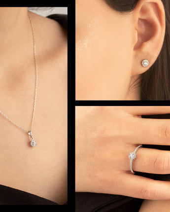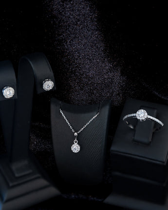 925 Sterling Silver Diamond Model Solitaire Shape Set 3 Pieces: Necklace, Ring & Earrings