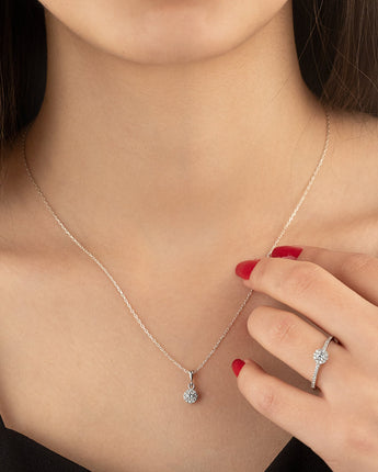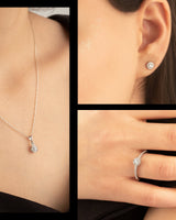 Diamond Model Solitaire Shape Jewelry Set 3 pieces: Necklace, Ring & Earrings - Valentine's Day Gift - 925 Sterling Silver Jewelry Set - Gift for Her - Handmade Pendant - Gift for Wife
