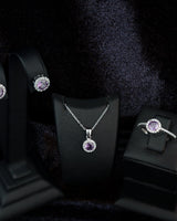 925 Sterling Silver Purple Single Stone Shape Set 3 Pieces: Necklace, Ring & Earrings